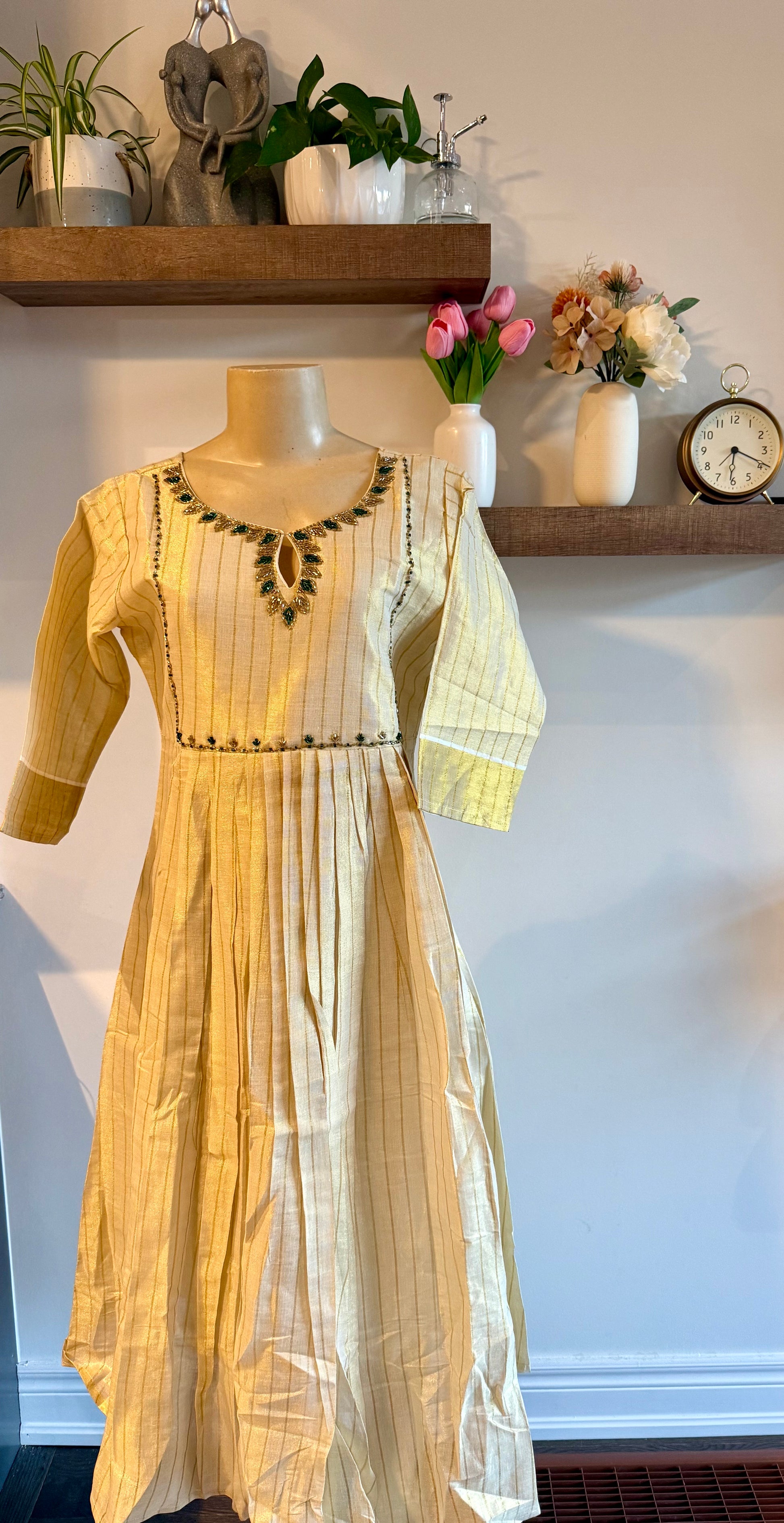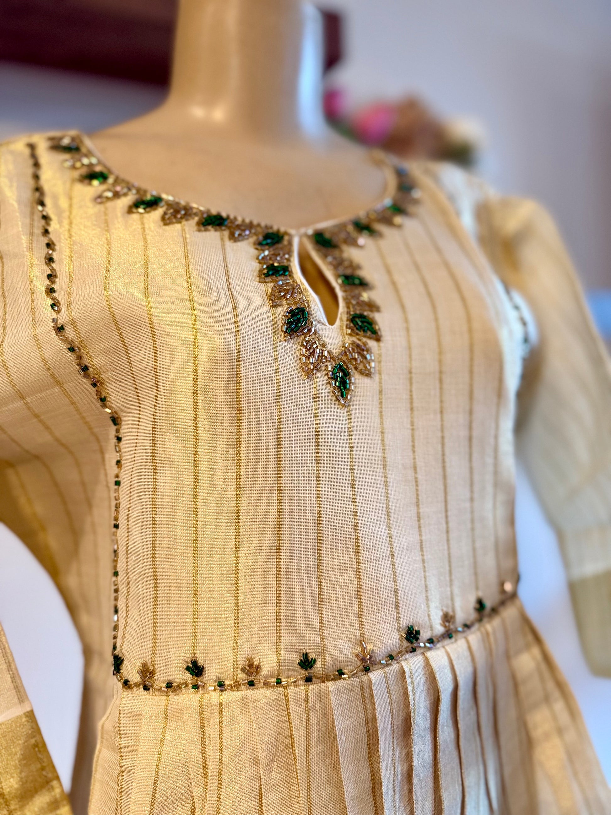 This Tissue Kurti combines delicate fabric with expert craftsmanship, featuring elegant handwork intricately designed on the yoke that adds a refined touch. Its graceful flair offers a flattering silhouette, making it ideal for both formal occasions and stylish everyday wear. Enjoy the lightweight comfort and sophisticated detailing, crafted to enhance your wardrobe with understated elegance.